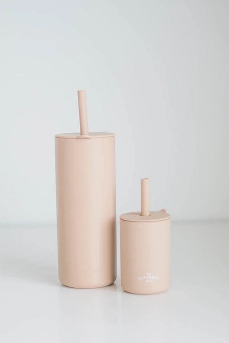 Our Saturday Baby Adult Straw Cups are made out of 100% food grade silicone material. Put our cups in the dishwasher at home or conveniently wipe them off on the go. Our adult cup holds 20 ounces and has all the same features of our kids cup. Now you can officially match your little one! Of course you can always feel safe knowing that all of our products are FDA approved, BPA, PVC, and BPS free.