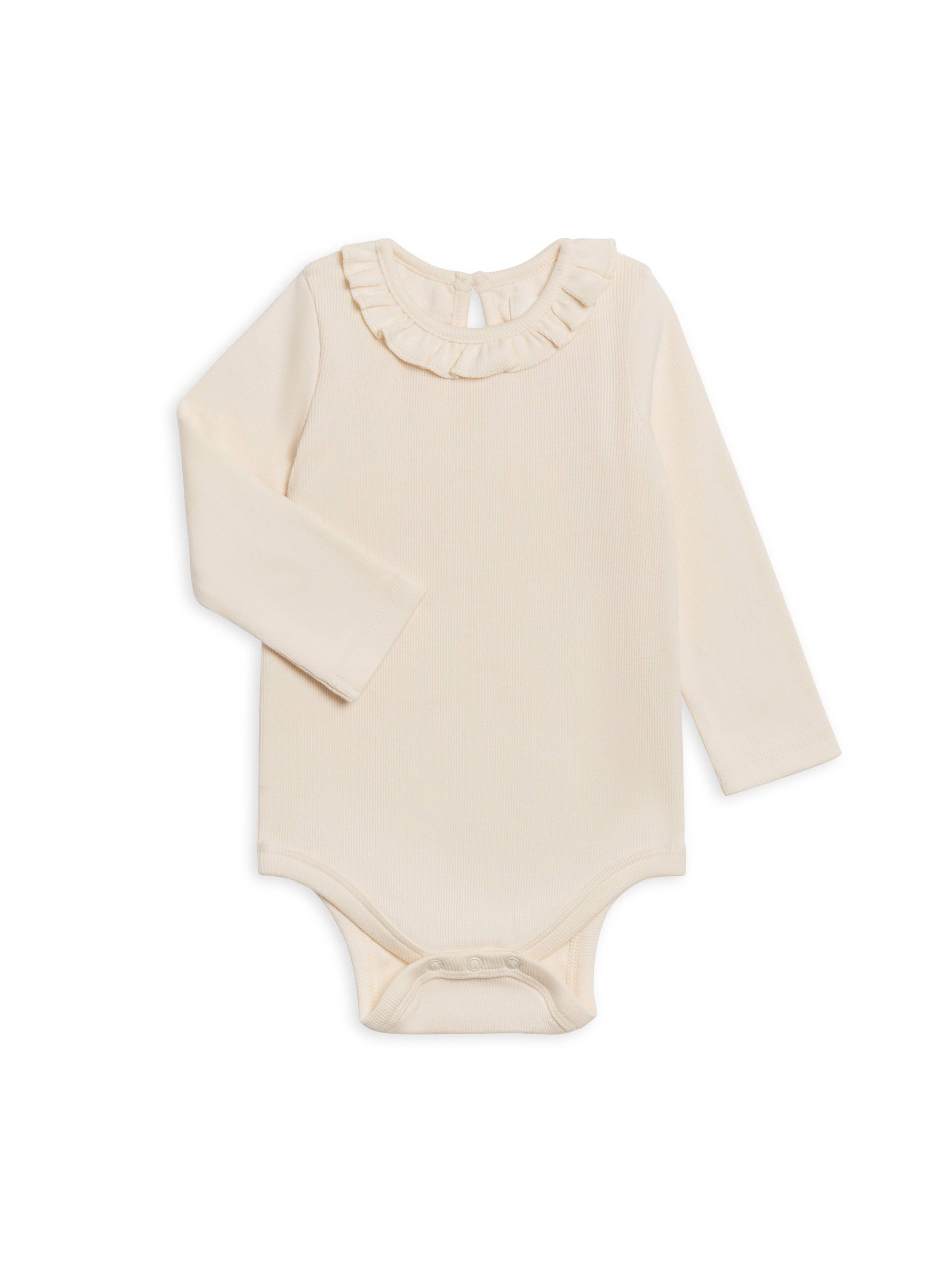 Perfect for layering or wearing on its own, the Irma Ribbed Ruffle Neck Bodysuit combines style and comfort, keeping your little one cozy and adorable during colder months.