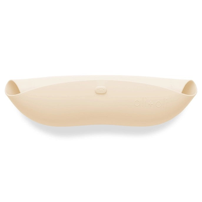 Ali+Oli's brand new roll-up & stay closed bib has the same features as the original bib, but now they added a little button so it can be closed. This is great since it makes it easy to store at home and on the go in your diaper bag. The bucket of the bib now serves as storage for utensils.