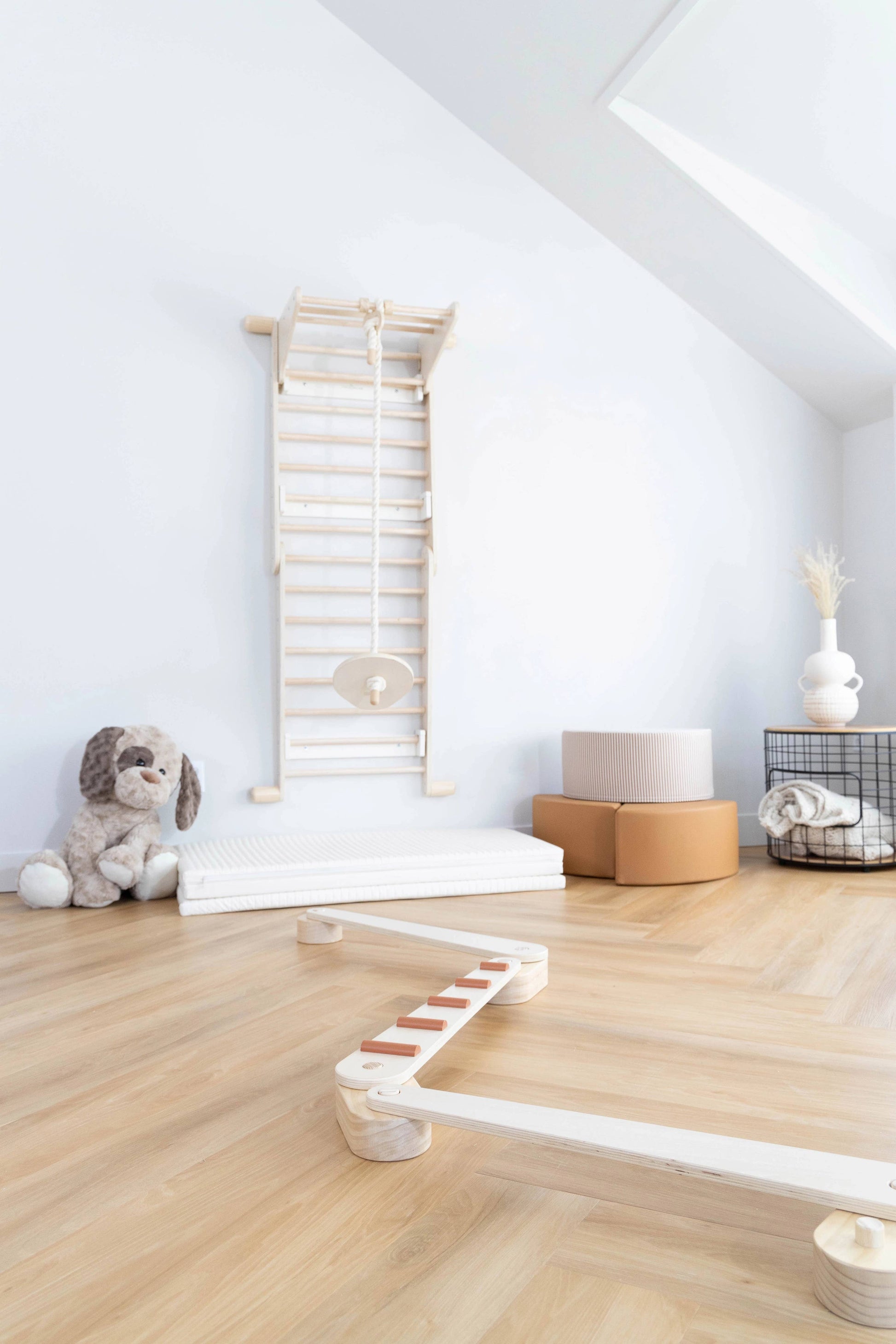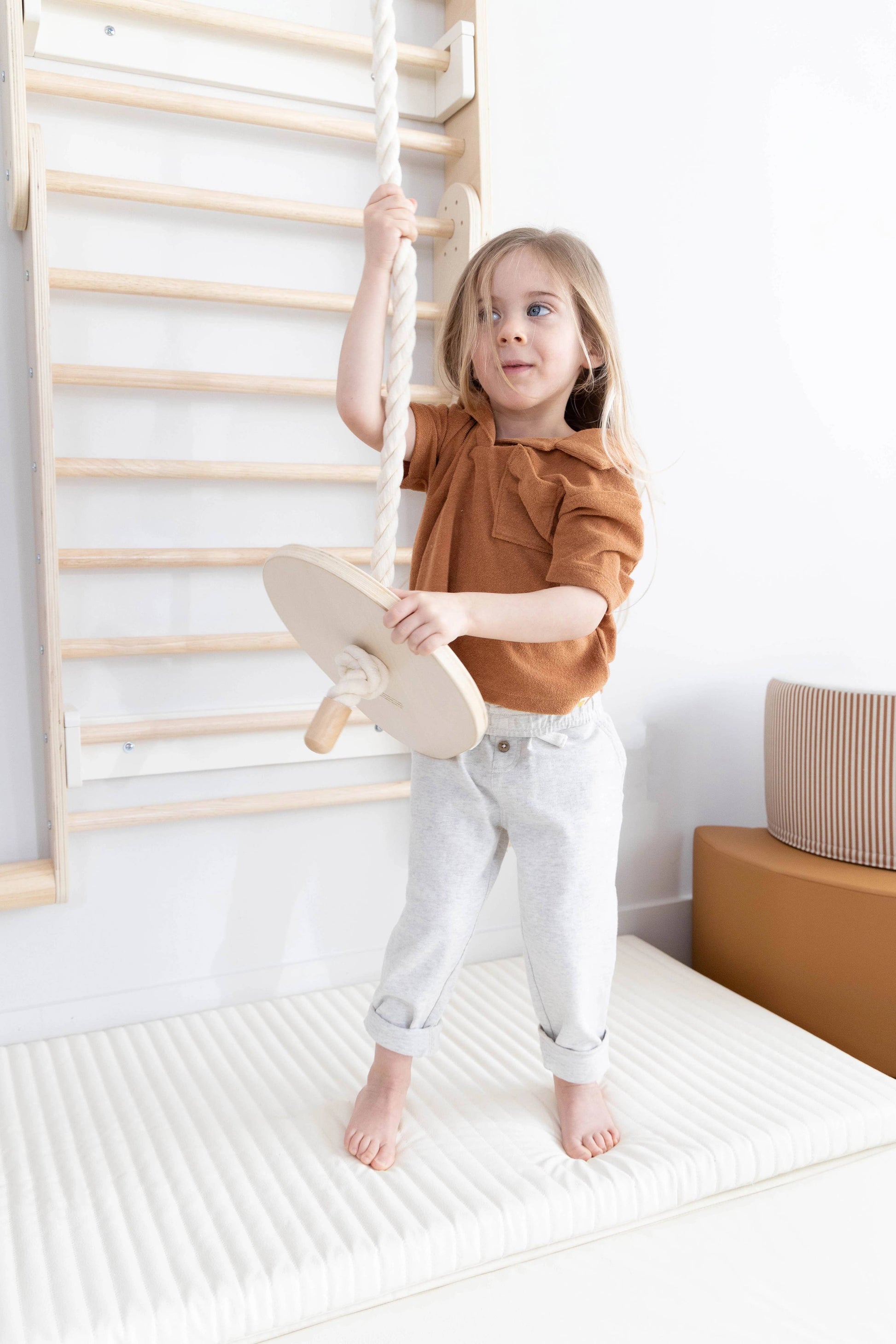 Perfect for children aged 3 and up, this swing is a fun and engaging way to enhance balance and coordination skills. Designed to be combined with the Montessori 2-in-1 Triangle & Wall Climber, as well as the Montessori Triangle Climber Swedish Wallmount System, it adds an extra layer of play and adventure to any indoor space.