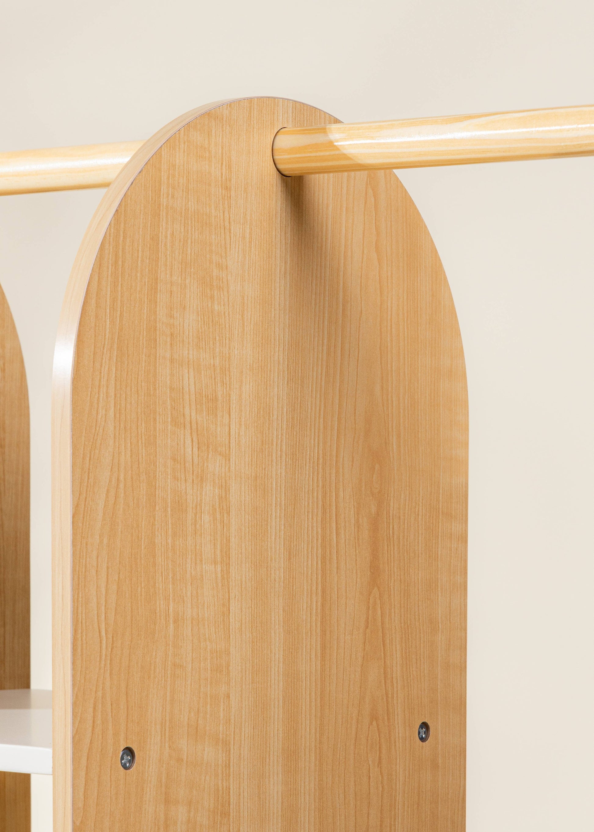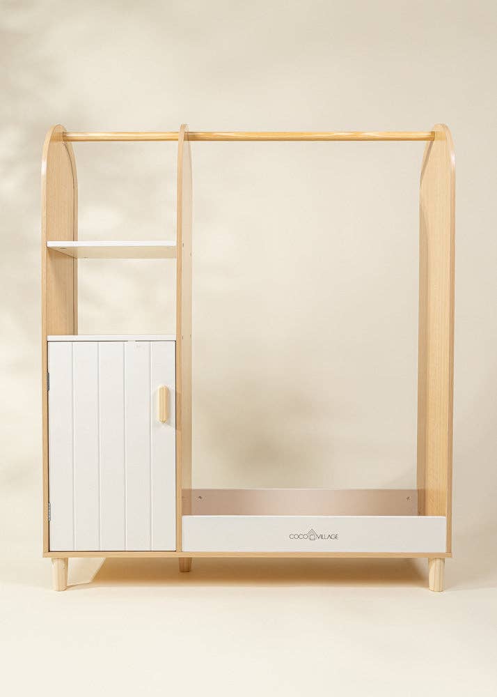 Crafted from sturdy wood and finished with smooth, kid-safe materials, this beautifully designed wardrobe brings organization and imagination together in one delightful piece.